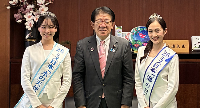 2026年04月08日(水)【4月8日】 2026年ミス日本「水の天使」志村美帆さん・ミス日本「海の日」野口絵子さんによる金子大臣への表敬訪問