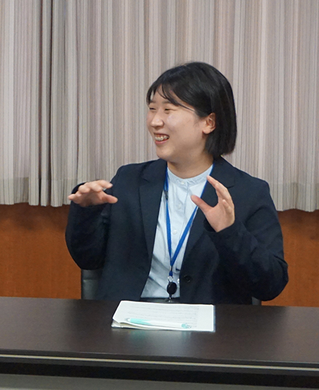 1年目だとどうしても業務についていけなくて、おいていかれているなという気持ちになったり、話したことがない方もたくさんいたりと、不安があるのかなと、入省前は思っていたのですが、今は、とてもフランクな空気のもとで業務に取り組めています。