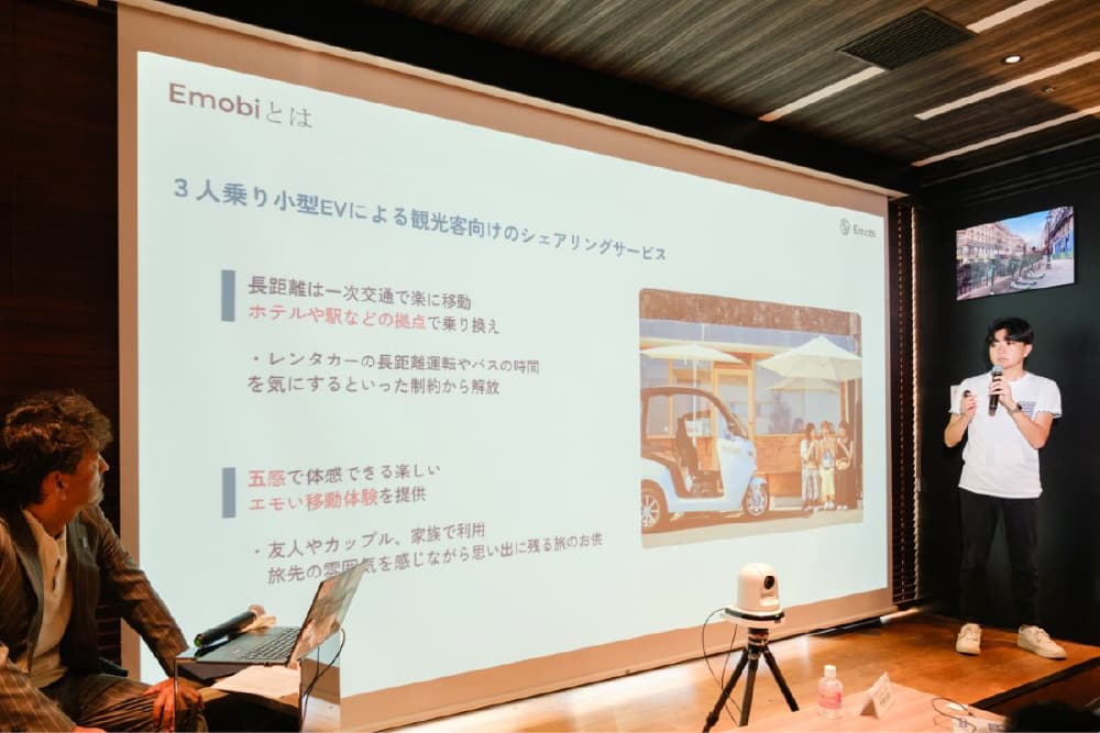 ピッチ後の講評で神田氏は、Emobiの事業を「非常におもしろく、多様な掛け合わせで収益を上げる可能性がある」とコメント。特に、観光でしっかり稼ぎ、その収益を地域の足の原資にしようとするモデルを評価した。