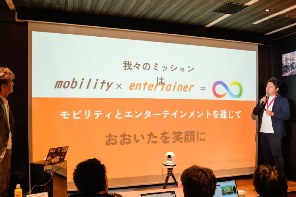 また、MCの植野氏が、株式会社モビリティデザインラボ Founder/最高挑戦責任者として同時に登壇。トヨタカローラ大分と一緒に取り組む「生活の足を支えるモビリティサービス 住宅団地のエレベーター」について紹介した。この取り組みでは、住宅団地の中を自由に動けるエレベーターのようなモビリティを作っていこうとしている。