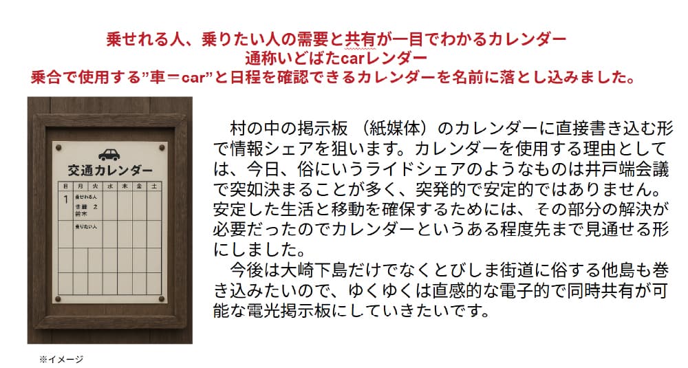 島から始めるやさしいライドシェア「いどばたCarレンダー」(チーム名:ぐっとGOOD)