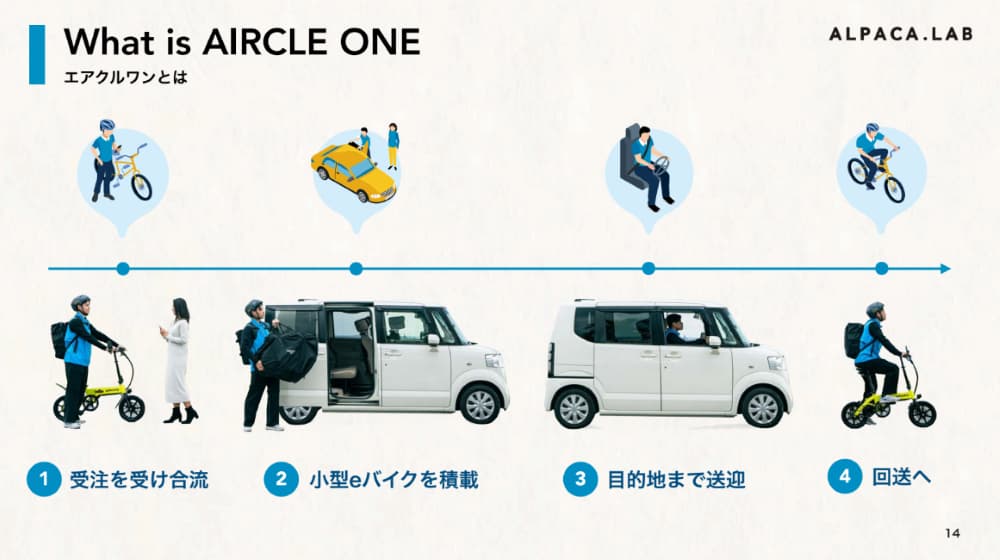 株式会社Alpaca.Labは、運転代行の配車プラットフォーム「エアクル」とドライバー提供プラットフォーム「エアクルワン」を全国で展開している。配車プラットフォーム「エアクル」では、従来のアナログな運行管理業務をデジタル化して効率化し、ユーザーの待ち時間を平均60分から7分へと短縮。アプリの累計ダウンロード数は20万件を超え、全国380事業者・850台以上が稼働している。