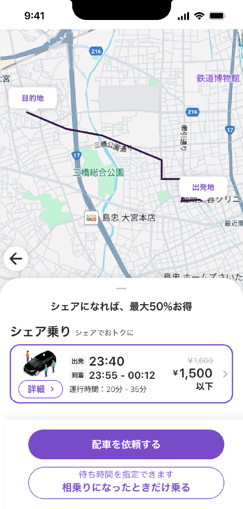 タクシーをその場でシェアする“リアルタイム相乗り”