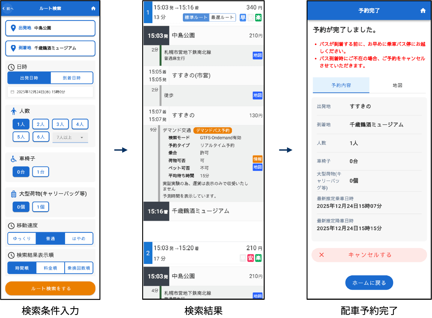 最大の成果は、一般的な乗換検索アプリ上で、オンデマンドバスを含む経路検索と予約が成立するUI/UXが、実際に有効であることを示せた点です。