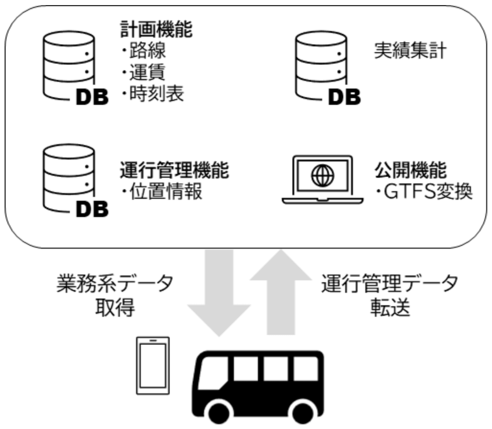 また、GTFSへの対応も重視しています。これにより、バスの時刻表やルート情報が一般的な経路探索アプリなどで扱えるようになり、地域の公共交通の見える化や利便性向上につながります。