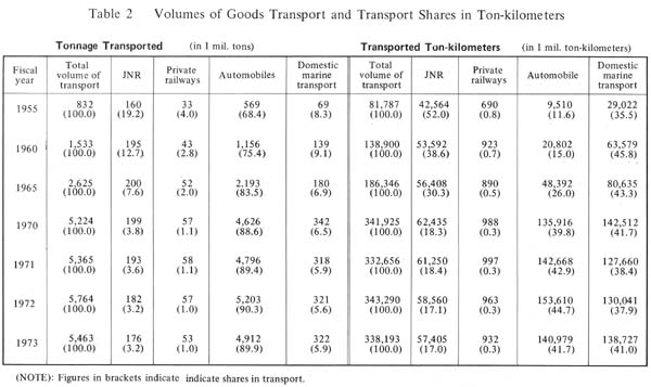 Table2:Volumes of Transport and Sharesin Ton-kilometers