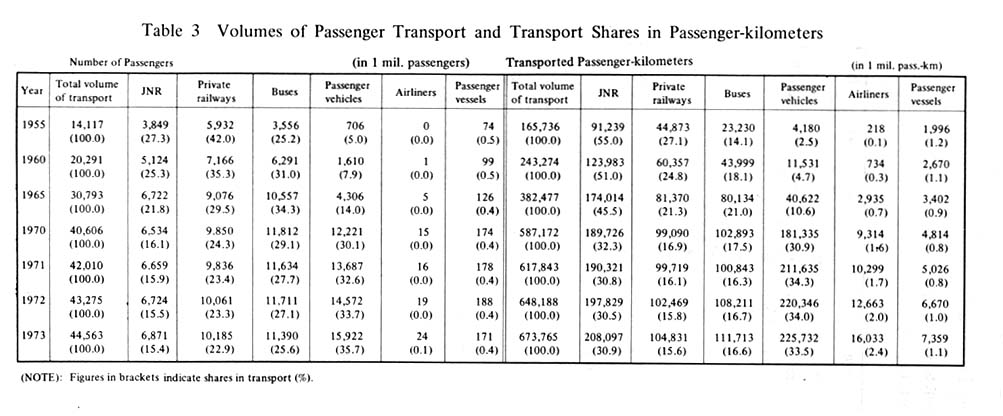 Table3:Volumes of Passenger Transport and Transport Sharesin Passenger-kilometers