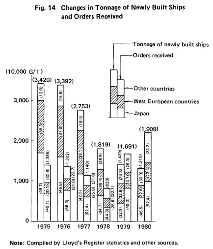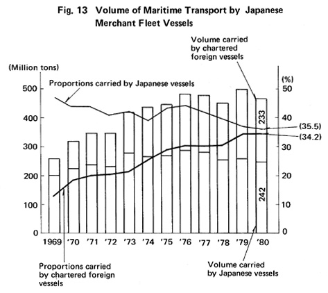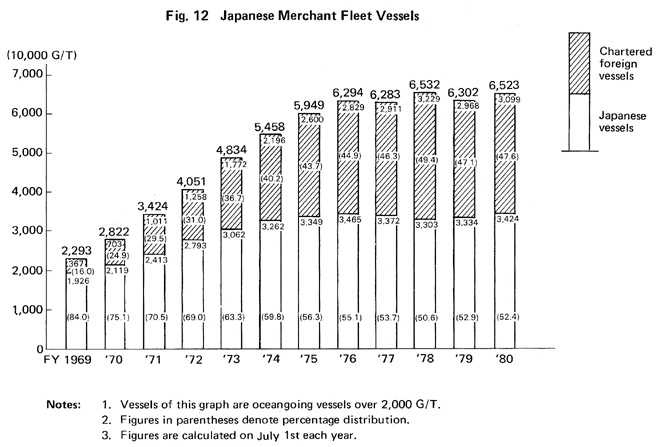 terms of tonnage in 1976. The Japanese merchant fleet has strengthened a tendency