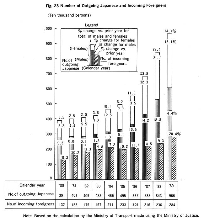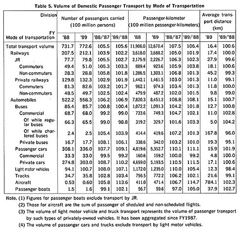 Features of passenger transport in FY1989 were that the JR's growth, which