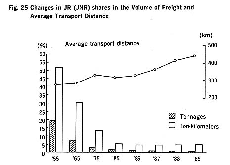 By mode of transportation, JR freight slackened compared with FY1988 when