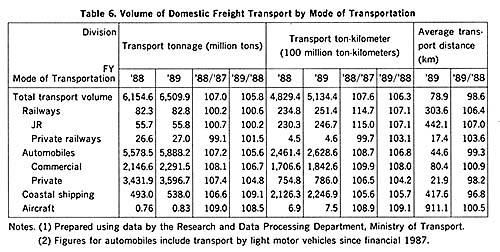 Reflecting the booming economy, domestic freight transport in FY1989 totaled
