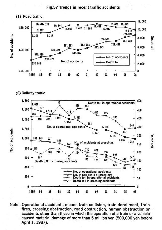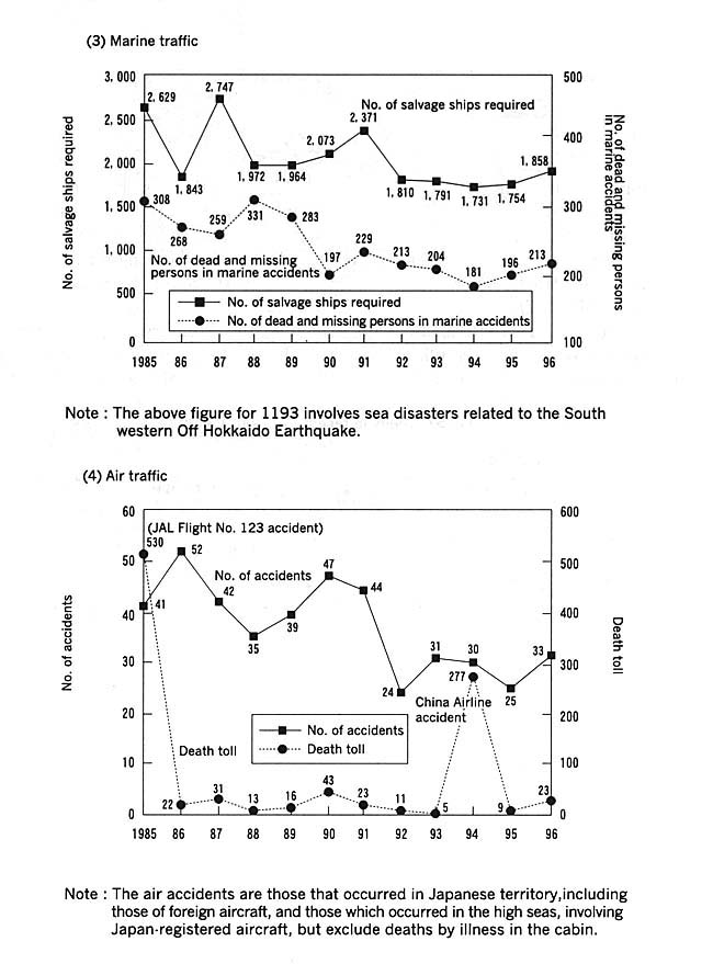 As Designated Administrative Organs according to the Disaster Countermeasures Basic Act, the Ministry of Transport, the Maritime Safety Agency, and the Meteorological Agency, are comprehensively and systematically promoting; the stepping-up Of forecasting systems for disaster prevention, disaster prevention measures for transport facilities and transportation means, measures for conserving national land, and disaster restoration activities.