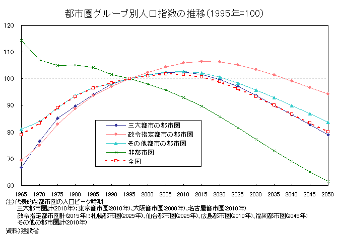図表 都市圏グループ別人口指数の推移(1995年=100)