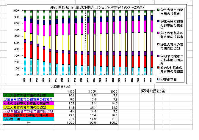 図表 都市圏核都市・周辺部別人口シェアの推移(1995年=100)
