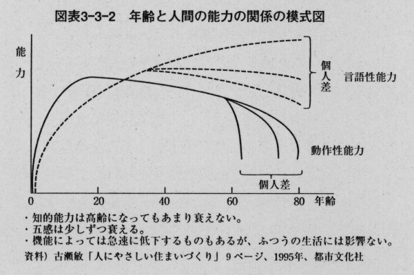図表 年齢と人間の能力の関係の模式図