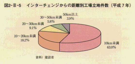 図表 インターチェンジからの距離別工場立地件数(平成7年)