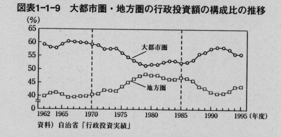 図表 大都市圏・地方圏の行政投資額の構成比の推移