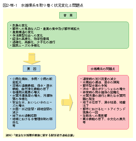 健全な水循環系の構築に向け、社会全体を視野に入れた国土の総合的な整備・保全・管理を指向する必要がますます高まっている状況にある。