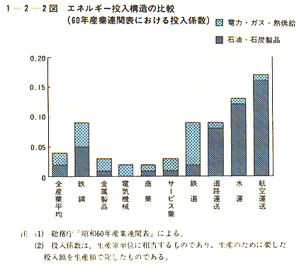 ここ数年来の円高と原油価格の低迷〔1−2−1図〕は、原材料コストの低下により、運輸産業におけるコスト構造に変化を生じさせた。運輸は、国内における石油の一大消費部門であり、運輸産業は全般的にエネルギー多消費型産業である〔1−2−2図〕ことから、円高、原油安による燃料費低下のメリットが比較的大きい部門といえる。燃料費のコストダウンは、人件費等の他のコストアップを補い、運賃・料金の安定化に役立つ一方、収益面で生じた余力を活かして、新規の研究開発投資、省力化投資等の実行、ニュービジネスの展開、経営の多角化等新たな企業戦略を構築する余地を生じさせている。