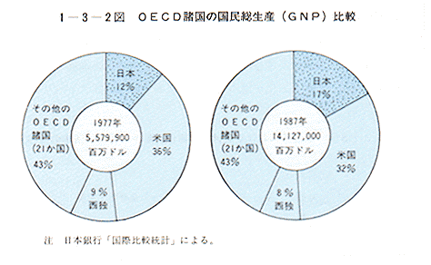 こうしたなかで、世界の経済活動の一割以上を占め、世界経済に与える影響が極めて大きくなっている我が国は〔1−3−2図〕、世界経済の相互依存関係がますます強まるなか、世界貿易、国際金融等の面で主導的役割を果たすとともに、我が国の対外不均衡の是正に一層の努力を行うことを求められている。