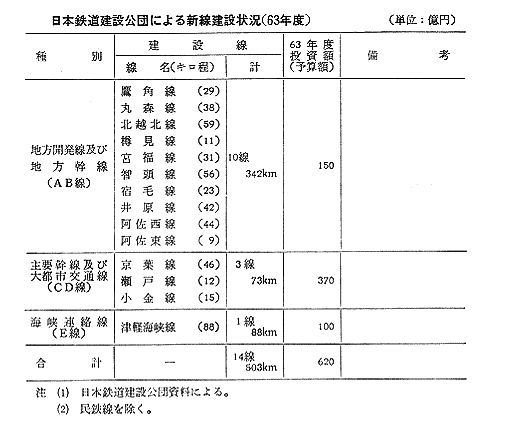 - (3) 日本鉄道建設公団及び本州四国連絡橋公団による新線建設状況