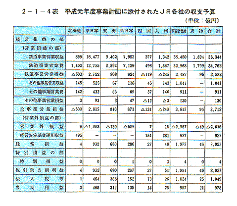 - JR各社は、平成元年3月31日運輸大臣により認可された各社の元年度事業計画を基本方針として事業運営に取り組んでいるが、各社の事業計画については、