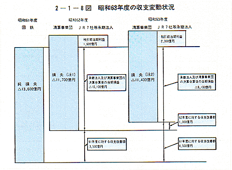- 承継法人(JR各社、保有機構、鉄道通信(株)、鉄道情報システム(株)、(財)鉄道総合技術研究所の各法人をいう。)の昭和63年度決算については、合計で約2,300億円の利益を計上している。