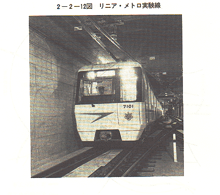 リニア・メトロの導入については、大阪市地下鉄7号線(京橋・鶴見緑地間)及び東京都地下鉄12号線への採用が決定しており、大阪市地下鉄7号線においては、平成2年春の開業を目指してリニア・メトロによる試運転が行われている〔2−2−12図〕。