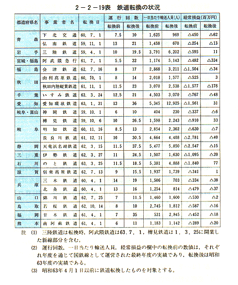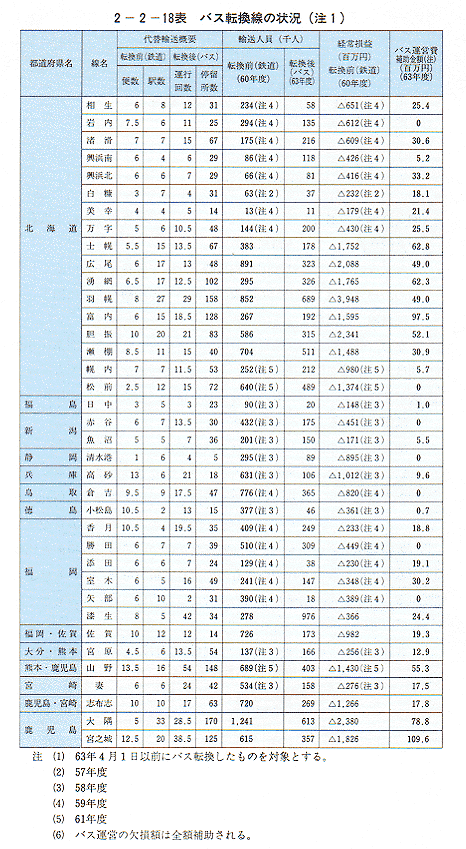なお、転換後のバス輸送において赤字が生じた場合、開業後5年間はその全額を国が補助することとなっているが、今後とも、輸送実績を踏まえつつ、一層の経営努力を重ね、地域の発展と住民の足の確保に努める必要がある〔2−2−18表〕。