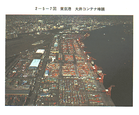 このような状況に対応し、平成元年度は、三大湾においては東京港、名古屋港等5港において大型のコンテナターミナルの整備を、また、三大港以外においては博多港、那覇港においてコンテナターミナルの整備を実施している。