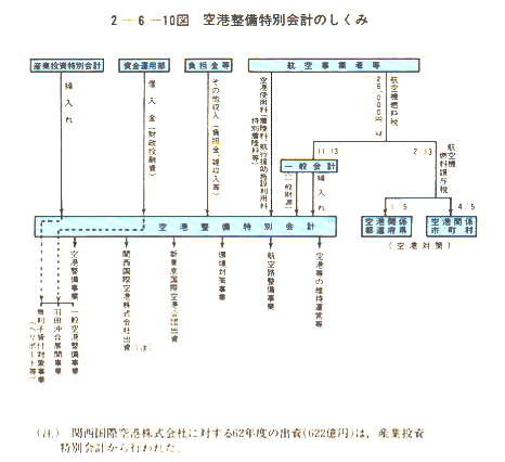- 空港整備については、45年度に「空港整備特別会計」が創設され、一般会計とは別個に経理されている〔2−6−10図〕。
