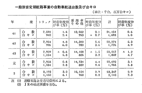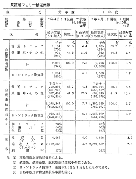 一般旅客定期航路事業の自動車航送台数及び台キロ