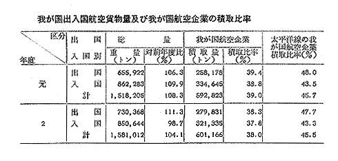 我が国出入国航空貨物量及び我が国航空企業の積取比率