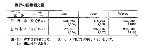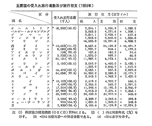主要国の受入れ旅行者数及び旅行収支(1989年)