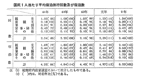 国民1人当たり平均宿泊旅行回数及び宿泊数