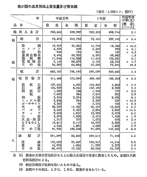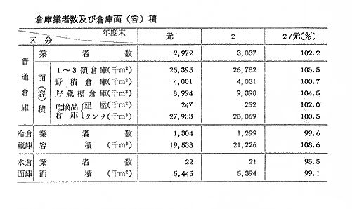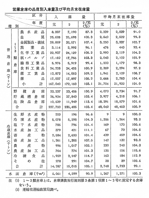 営業倉庫の品目別入庫量及び平均月末在庫量