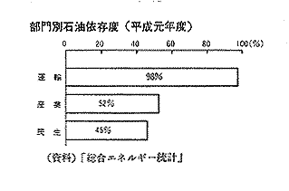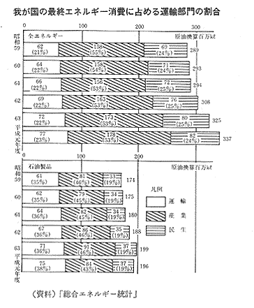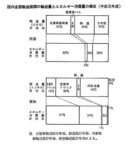 国内主要機関の輸送量とエネルギー消費量の構成(平成元年度)