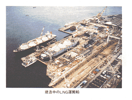 建造中のLNG運搬船