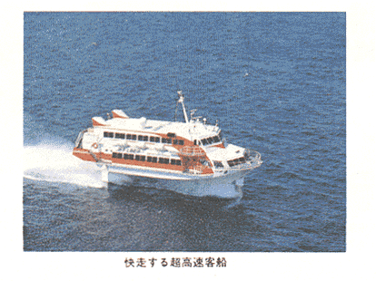 3年3月15日には、エアクッション双胴船(航海速力30〜50ノット、約56〜93km/h)が長崎〜串木野(鹿児島県)に就航しており、今後も続々と超高速旅客船の導入が検討されている。