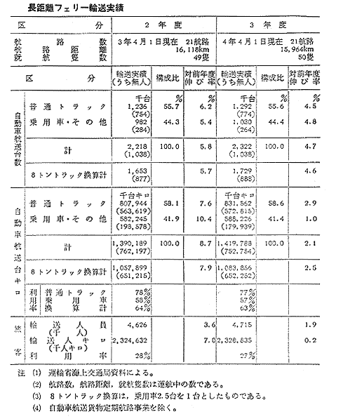 一般旅客定期航路事業の自動車航送台数及び台キロ