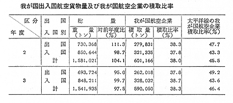 我が国出入国航空貨物量及び我が国航空企業の積取比率