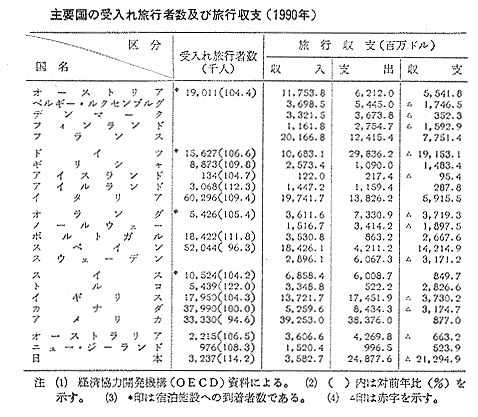 主要国の受入れ旅行者数及び旅行収支(1990年)