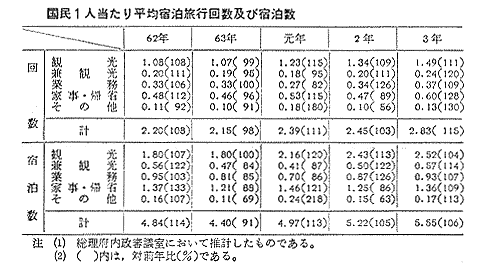 国民1人当たり平均宿泊旅行回数及び宿泊数