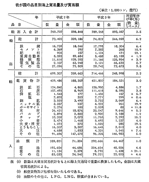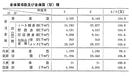 営業倉庫の品目別入庫量及び平均月末在庫量