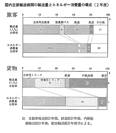 国内主要輸送機関のエネルギー消費量の構成(2年度)