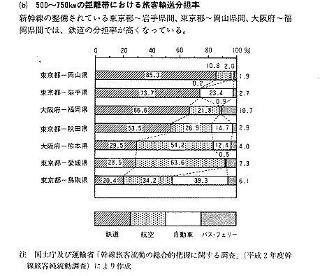 距離帯別旅客輸送分担率 (b)500〜750kmの距離帯における旅客輸送分担率