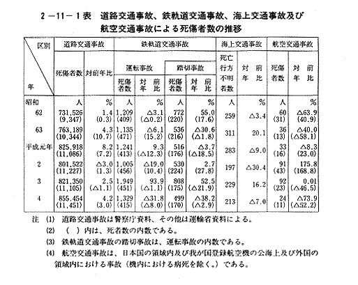 道路交通事故、鉄軌道交通事故、海上交通事故及び航空交通事故による死傷者数の推移