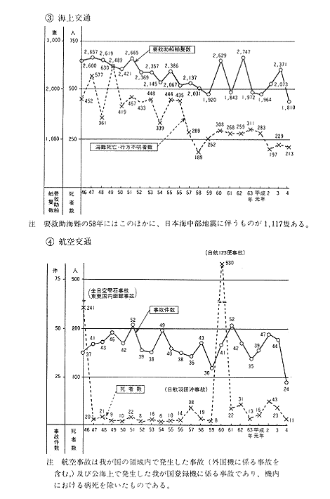 交通事故数と死者数の推移 B海上交通 C航空交通