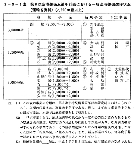 第6次空港整備五箇年計画における一般空港整備進捗状況(運輸省資料)(2,000m級以上)