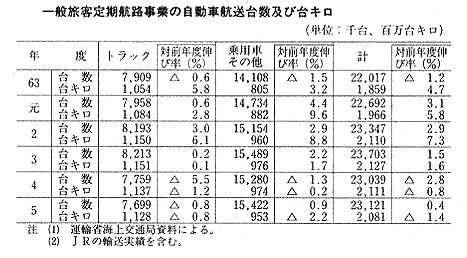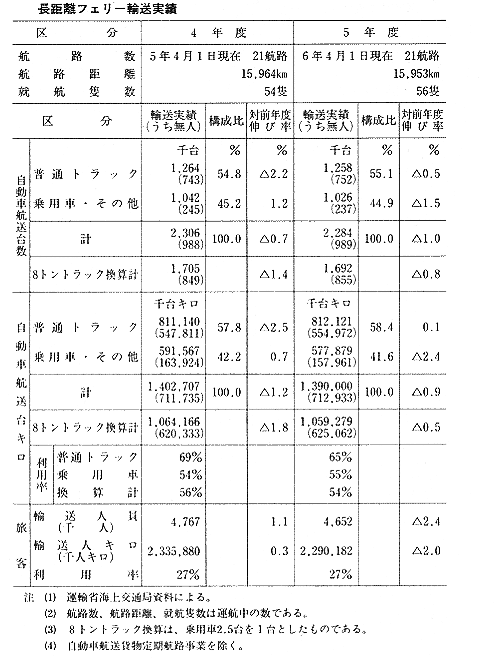 一般旅客定期航路事業の自動車航送台数及び台キロ